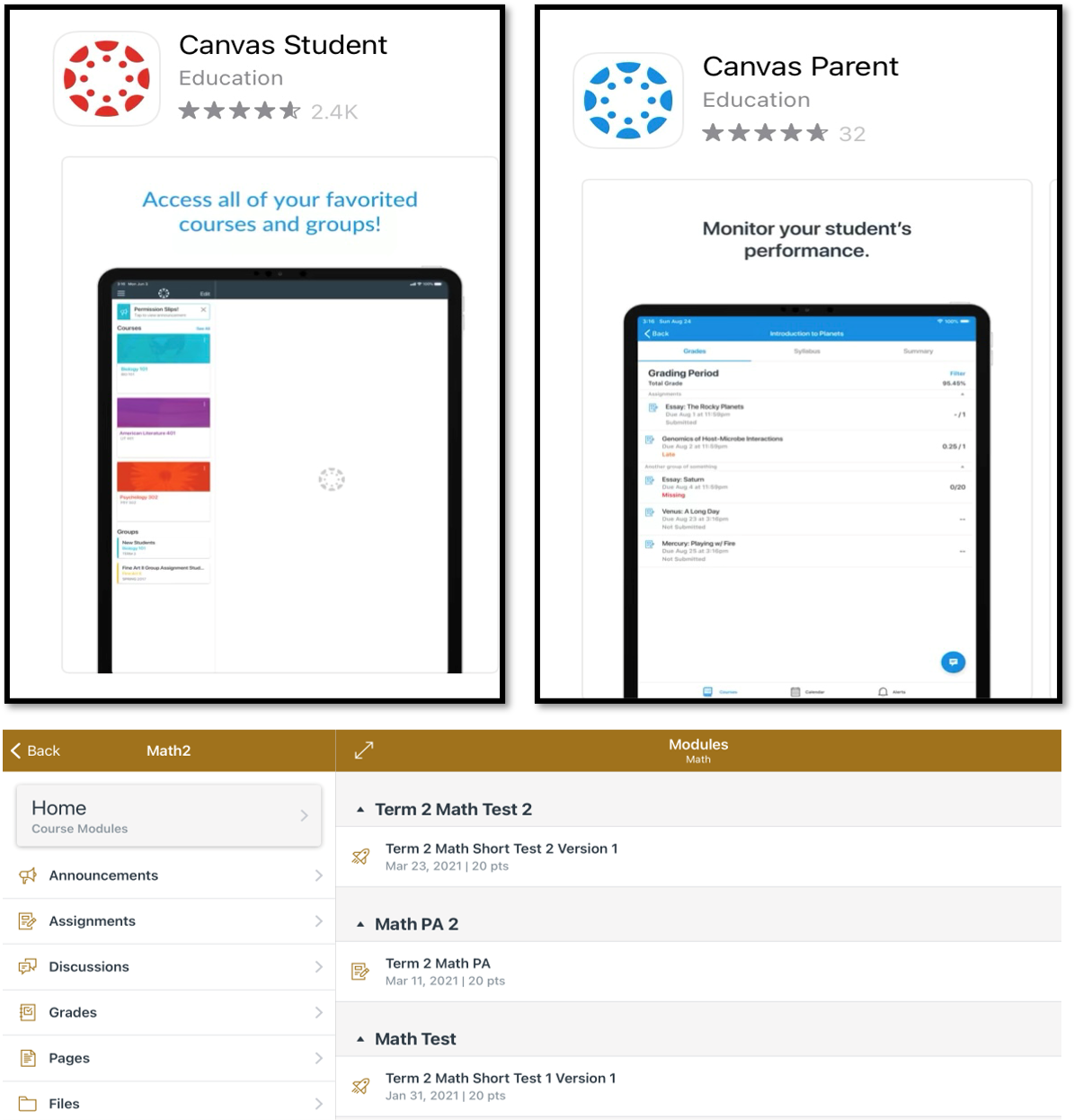Parents of registered students are advised to regularly check the school learning management system application Canvas which is provided by the school to all students. This system includes: